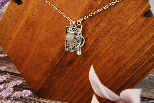 Silver Sun OR Moon Tarot Card Pendant with Dangles Necklace