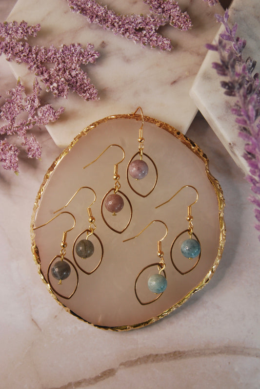 Moon Phase Cat with Blue Sandstone Bead Earrings