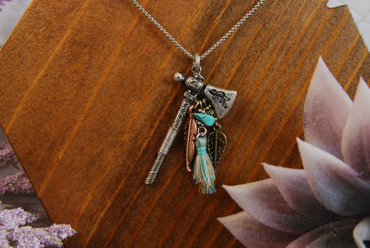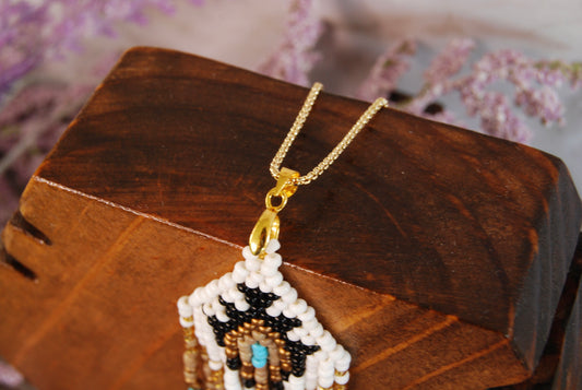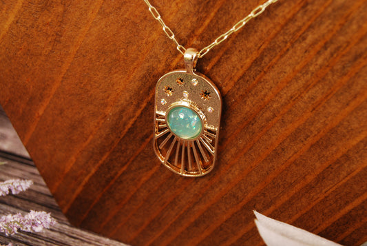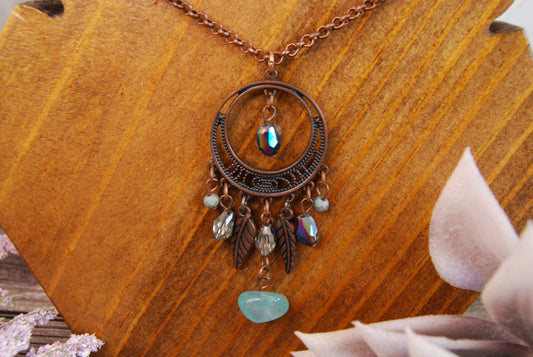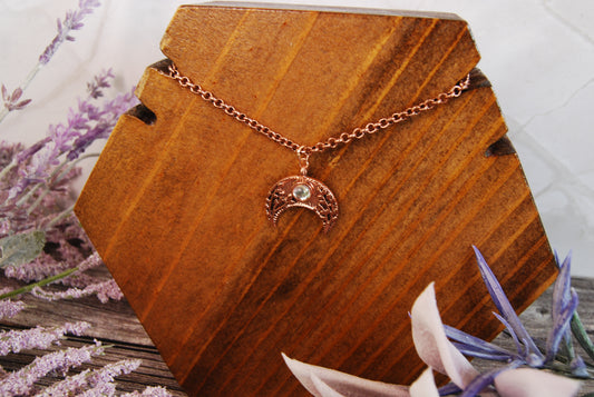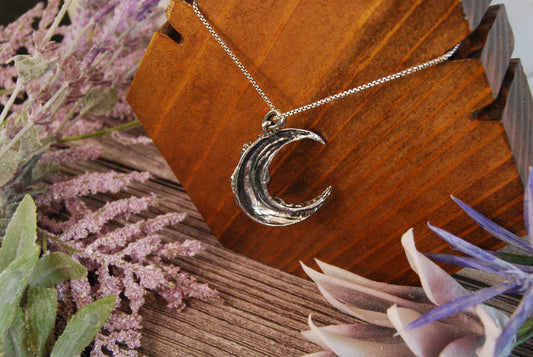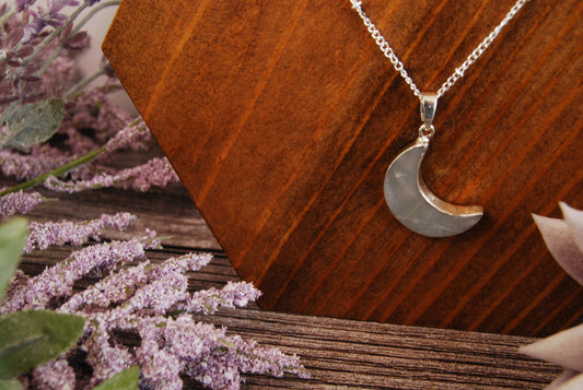 Acrylic Moon with Leaf on Silver Chain Necklace