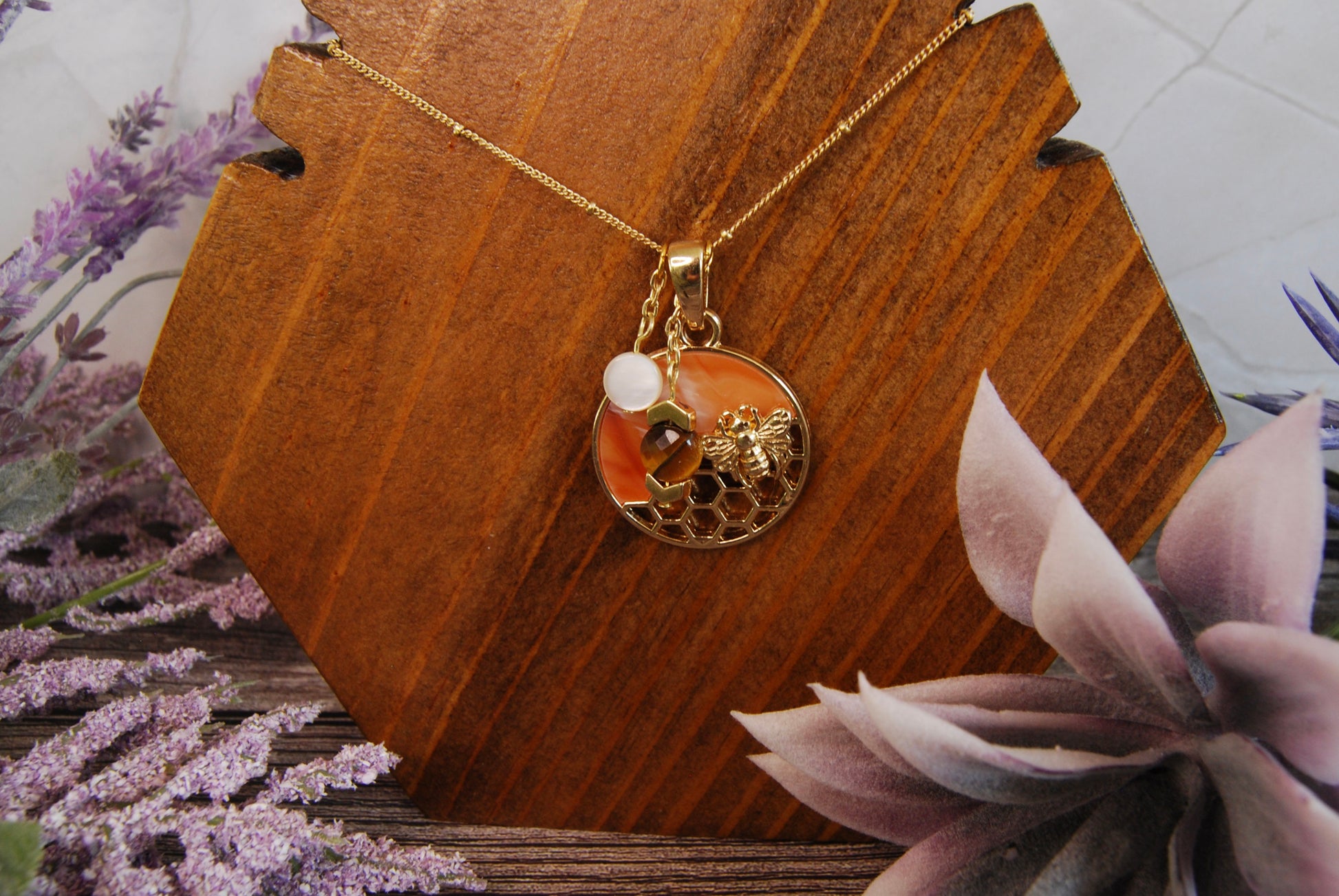 Chain length is 20". Includes a tiger's eye dangle and shell dangle.
