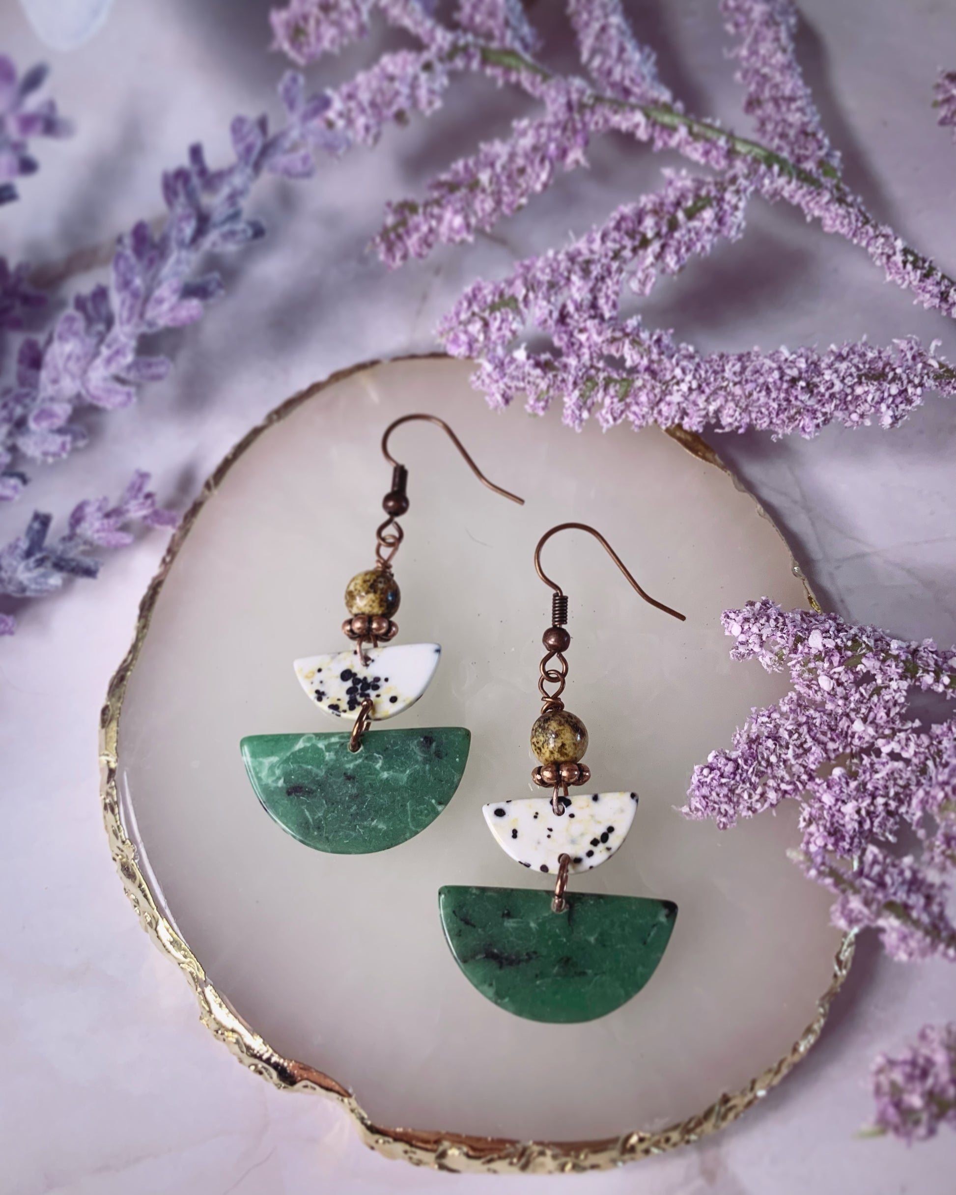 Faux Stone Half Moons with Red Copper Findings.