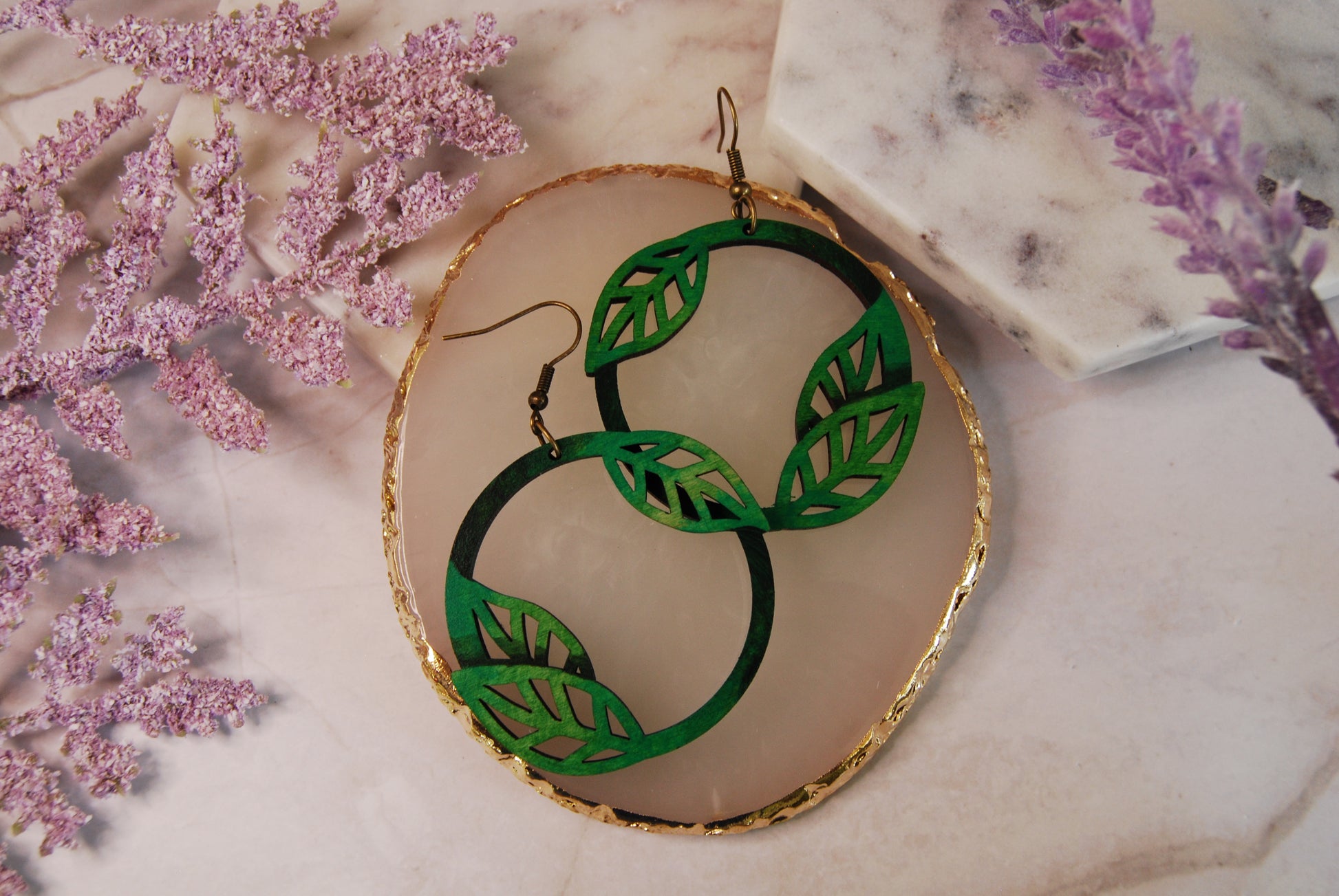Hand Painted Leaf Hoop Earrings